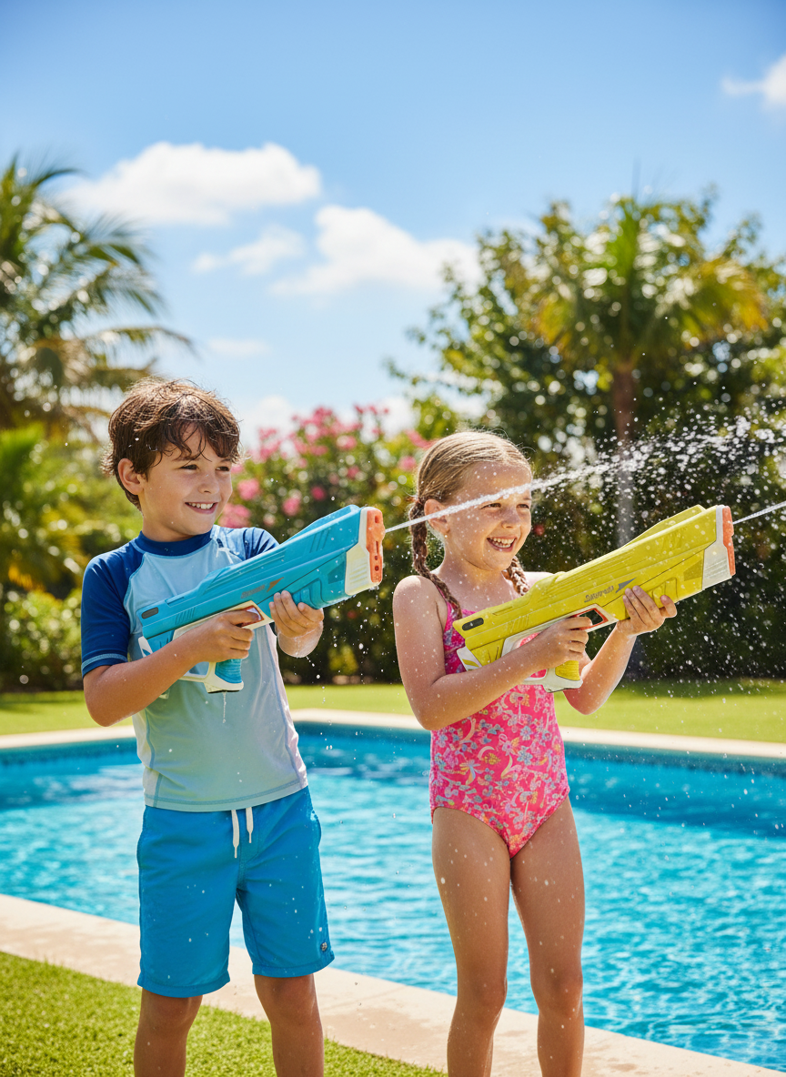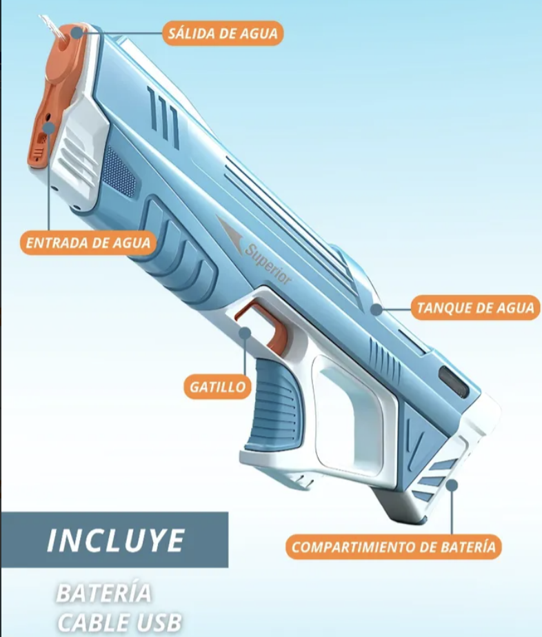 - ⚡ Succión inteligente: Recarga agua automáticamente, listo para el próximo disparo.